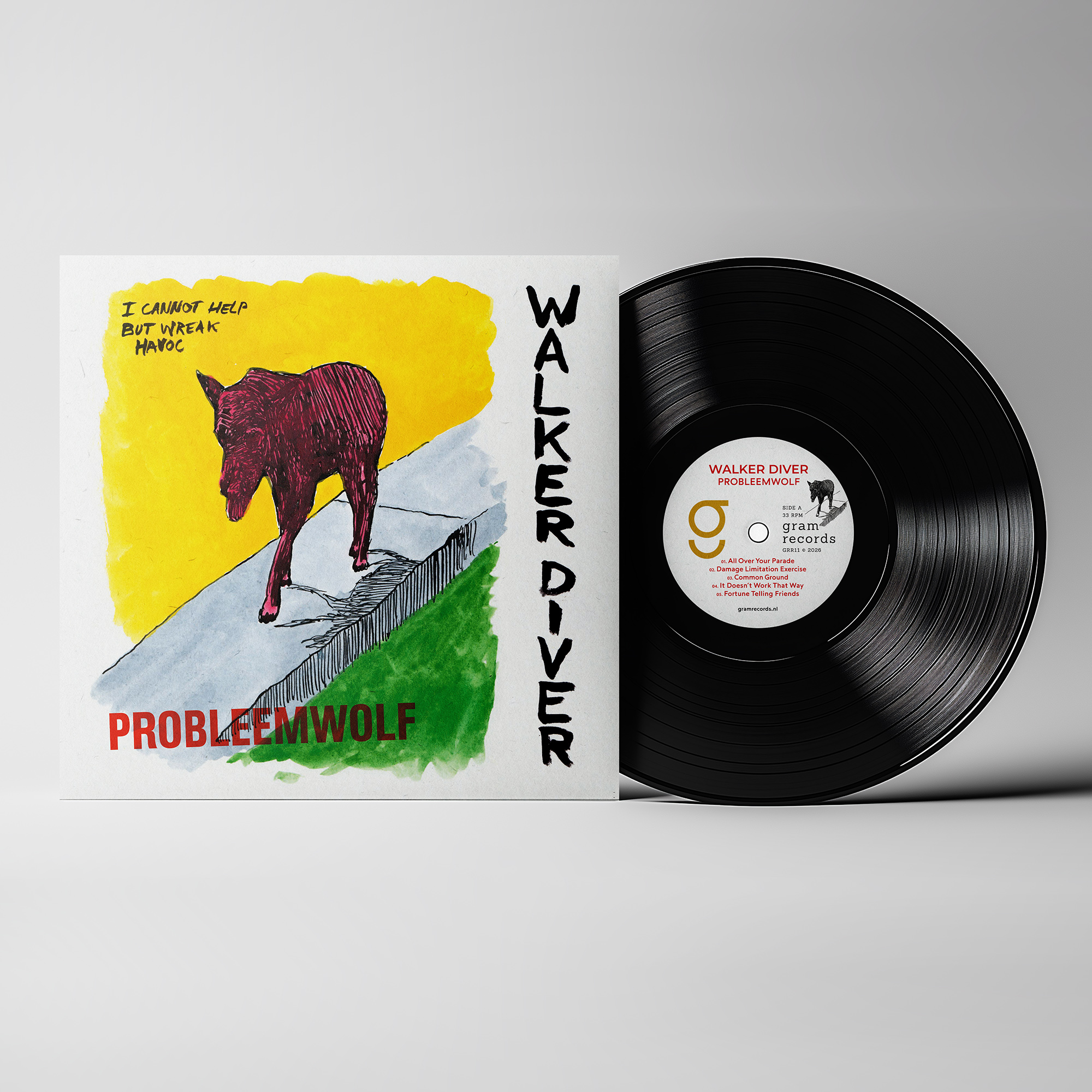 March 2026 sees the release of “Probleemwolf”, the fifth album by Dutch indie rock / alt country band Walker Diver, via Gram Records. This time around there’s no acoustic guitars or old-timey folk vibes, “Probleemwolf” finds the band revisiting its powerpop and punkrock roots in ten hard-hitting yet melodic tunes. The current line-up is nothing less than spectacular, featuring Patrick Delabie (Scoundrels, Betty Ford Clinic, Mitch) on drums, Mathijs Peeters (Litzberg, Gasoline Brothers) on lead guitar, Maarten Vermeulen (Angstgegner, BPA, Hvalross) on bass and Stefan ’t Hooft on guitar and lead vocals. Everything was recorded in just a few takes at Studio 195 in Wernhout NL by Patrick Delabie, and mastered at Point Break Sound in San Diego CA by Perry Leenhouts.